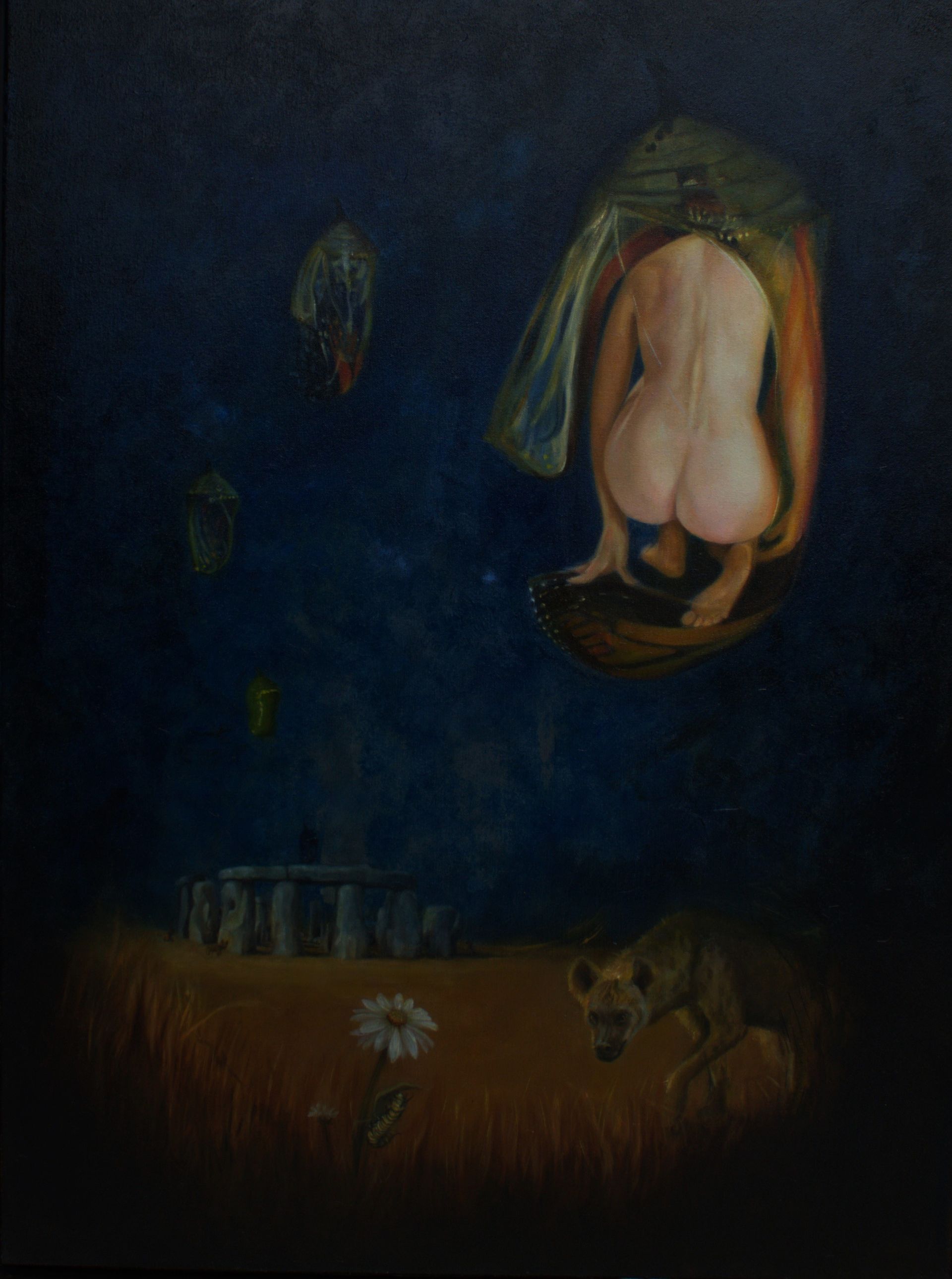 Monarch - Butterfly Effect is a profound reflection on transformation, resilience, and the journey of womanhood. Inspired by the metamorphosis of a butterfly, it symbolizes personal growth and rebirth. Lurking hyenas represent external challenges and criticism, while the butterfly-woman at the center embodies strength, beauty, and self-realization. Part of a larger series exploring metamorphosis, this piece celebrates the enduring power of inner transformation.